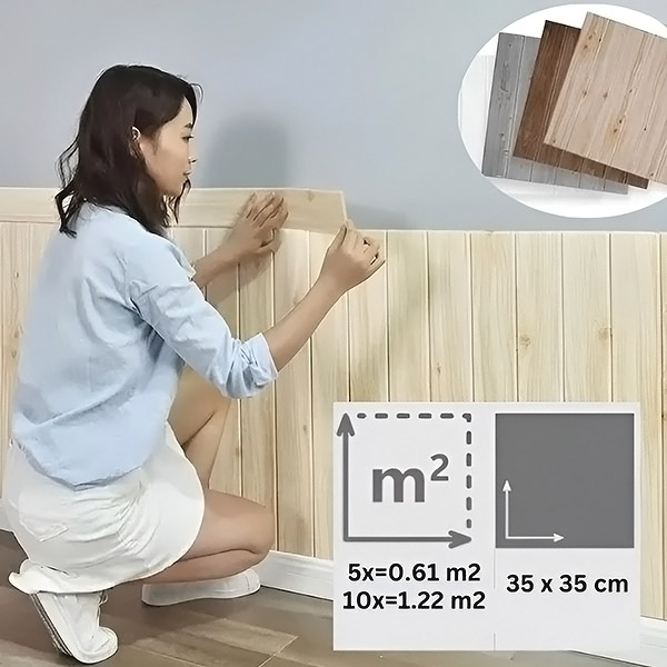 Každé balení obsahuje 5 kusů (35×35 cm), které pokryjí 0,61 m². Než začnete, spočítejte si, kolik balení budete potřebovat podle plochy stěn. Pro větší prostory kupte více balení a využijte množstevní slevy!