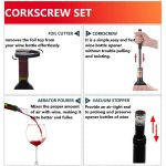 Tato sada 4v1 obsahuje otvírák s vzduchovým čerpadlem, ořezávač fólie, provzdušňovač a vakuovou zátku pro dokonalý vinný zážitek.