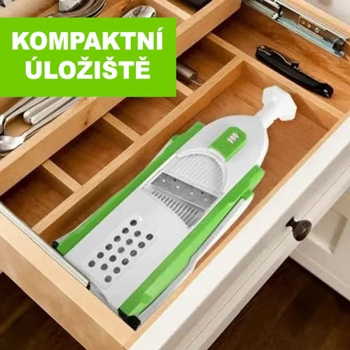 Skládací konstrukce šetří místo, takže je ideální pro jakoukoli velikost kuchyně. Umožňuje také rychlou a bezpečnou přípravu ovoce a zeleniny různých tvarů!